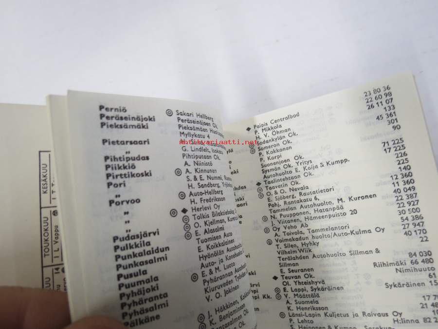 9 x 12 cm kirjanen, etusivulle leimattu; Pyhärannan Autohuolto Kallio.