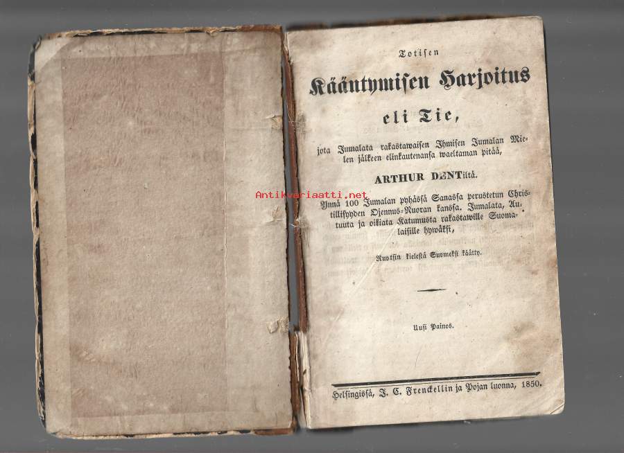 Totisen kääntymisen harjoitus, eli tie jota Jumalaa rakastawaisen ihmisen Jumalan mielen jälkeen elinkautenansa waeltaman pitää : ynnä 100 Jumalan pyhässä sanassa perustetun christillisyyden ojennus-nuorain kanssa, Jumalaa, autuutta ja oikiaa katumusta rakastawille suomalaisille hywäksiTotisen käändymisen harjoitus (1850)KirjaDent, Arthur ; Wacklin, Samuel , 1710-1780 ; Francke, August Hermann ; Schütz, Johann Jakob ; Tammelinus, Gabriel Laurentii [Frenckell], Frenckell 1850Näytä muut versiot (4)Ulkoasu 200 sivua ; 8:o (19 cm)Kieli suomiAlkuteoksen kieli englantiHuomautukset Arkin tunnukset merkitty numeroinNimiösivulla myös: Ruotsin kielestä suomeksi käätty.Kustantaja oletettu.Impr.: Åbo domkapitel, den 26 September 1849. Enligt befallning: A. Victor Favorin.Tiililän mukaan Dentin teoksen suomentaja Samuel Wacklin.Toinen teos Muutamat sen oikian ... anonyymi, Tiililän mukaan toimittaja ehkä August Hermann Francke ja suomentaja Samuel Wacklin.Kolmas teos ilmestynyt ilman tietoa tekijästä. Tekijä Stiernmanin ja Tiililän mukaan, Stiernmanin mukaan suomentanut Gabriel Tammelinus.LisääJulkaisija [Turku] : [Frenckell], Frenckell, 1850Luokitus udkx 242Aiheet 1800-luku hartauskirjat. rukoileminen. harvinaiskirjat. Valmistaja (Turussa) :Lisätiedot Artur DentiltäYhtenäistetty nimeke Muutamat sen oikian uuden syndymisen ja hengen uudistuxen tundomerkit (1850)Christillinen muisto-kirja (1850)The hand-maid of repentanceKenn-Zeichen der Wahren Wiedergeburth und Erneurung des Geistes, von einen einfältigen .... durch die Gnade Gottes Hocherleuchteten Bauersmann vormahls beschrieben ...Christliches GedenkbüchleinKontrolloimaton nimeke Muutamat sen oikian uuden syntymisen ja hengen uudistuksen tuntomerkit, yksinkertaiselta talonpojalta ensisti saksan kielin kirjoitetut, ynnä walituksen kanssa uuden syntymisen wäärinkäyttämisen ylitseChristillinen muisto-kirja, edes auttamaan yhtä aljettua uutta elämäkertaa, jossa lyhykäisesti ja yksinkertaisesti se ensimmäinen neuwo ja ojennus annetaan, syntein poispanemiseen, sisällisen ihmisen walistukseen, ja yhden christinuskowaisen yhdistykseen Jumalan kanssaVähemmän