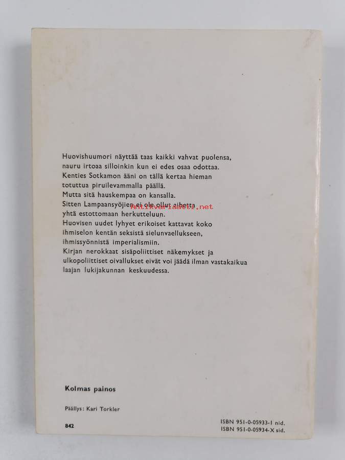 Hyvä. Hieman kulumaa kansissa, selkämyksessä hieman vinoutta, selkämyksessä lukutaittumaa