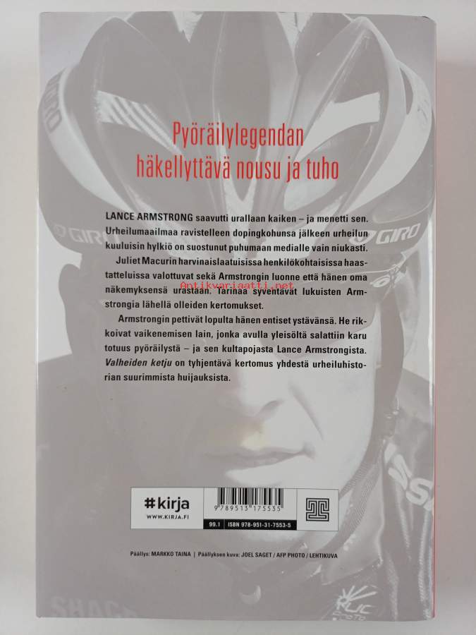 Muu(t) tekijä(t): Sami HeinoAlkuteos: Cycle of Lies. The Fall of Lance ArmstrongAsiasanat: urheilu, henkilöhistoria, urheilijat, huippu-urheilu, käyttö, ammattiurheilu, doping, pyöräily, kilpapyöräilijät, pyöräilijät, kilpapyöräily, kestävyyslajit