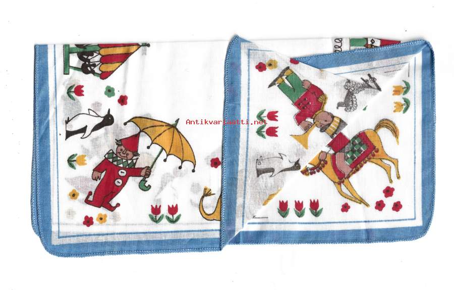 Lasten vintage nenäliina liina Sirkus - kangasta n 23x23 cm