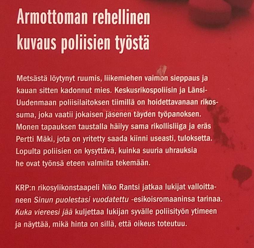 Kuka viereesi jää. ( rikoskirjallisuus, poliisityö )