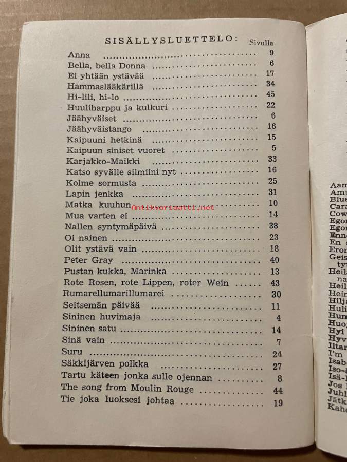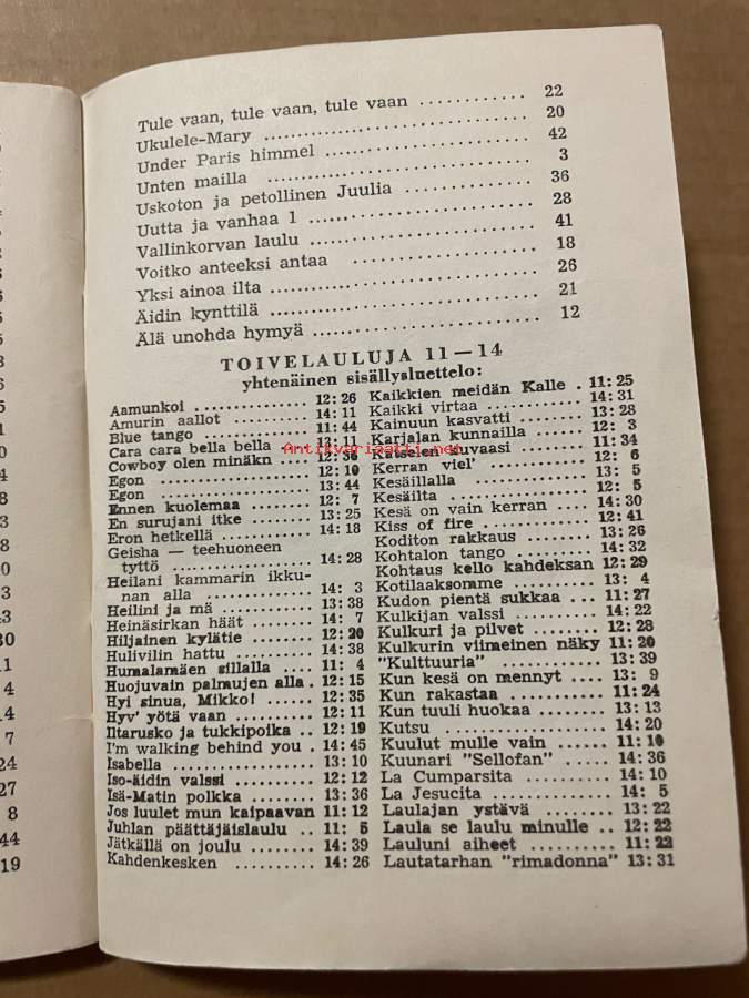 Toivelauluja : Iskelmien aarreaitta. 50Julkaistu:Hki : Fazer, 1962