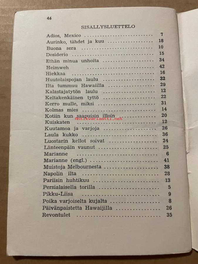 Toivelauluja : Iskelmien aarreaitta. 50Julkaistu:Hki : Fazer, 1962
