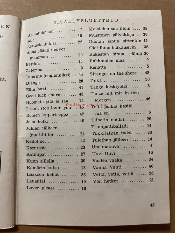 Toivelauluja : Iskelmien aarreaitta. 50Julkaistu:Hki : Fazer, 1962