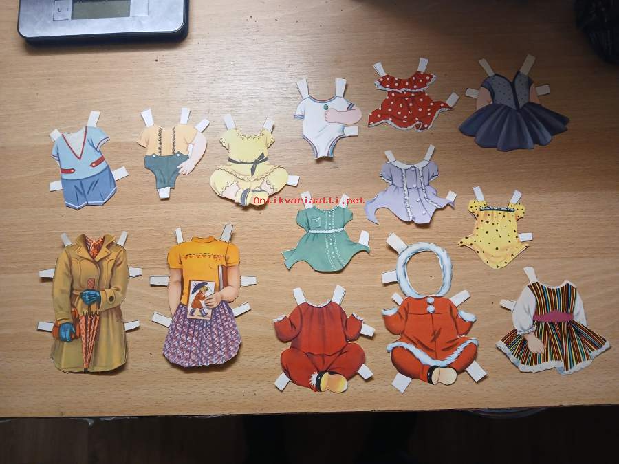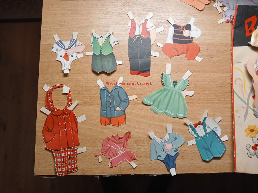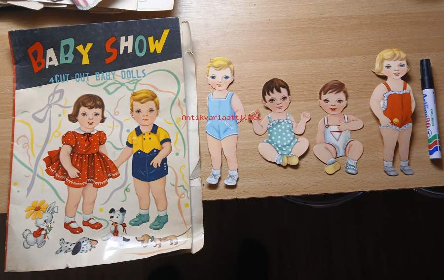 4 Baby Show paperinukkea 1940-50 -luvulta ja vaatteita ym.
