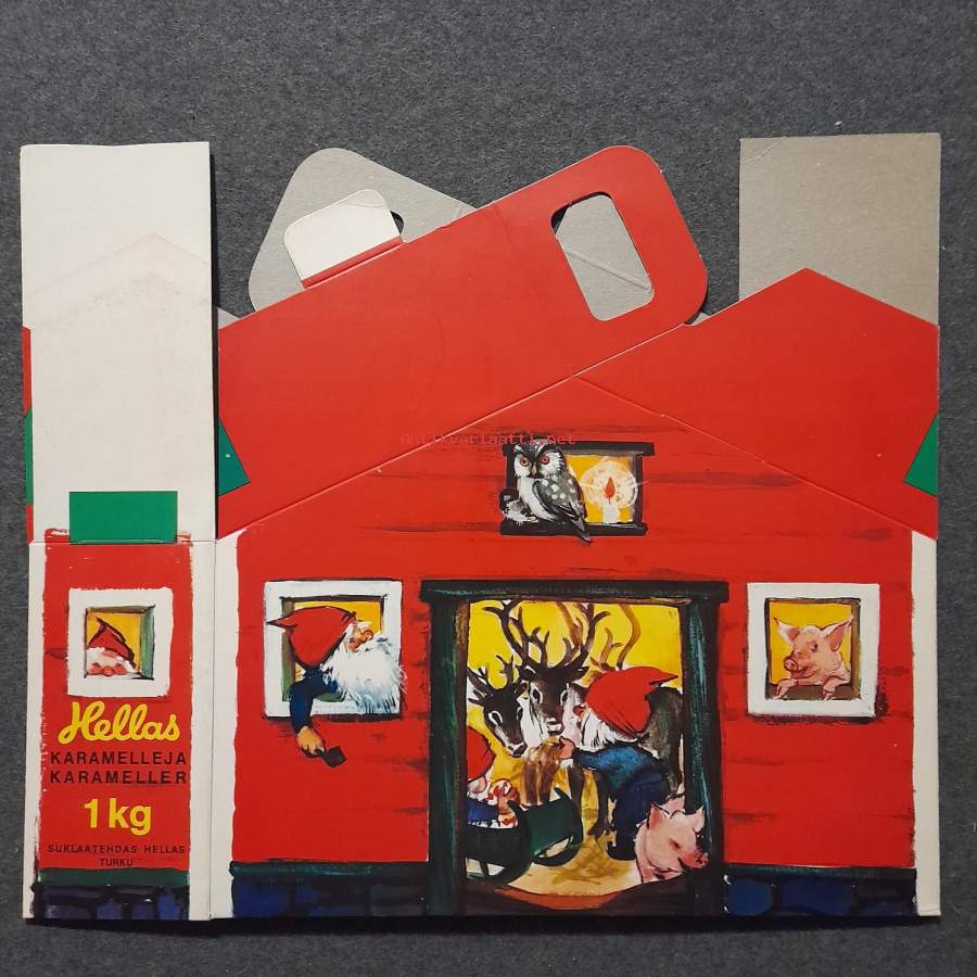 Joulu Hellaksen joulukarkkitalo tuotepakkaus kokoamaton jouluinen kuvio tunnelmallinen