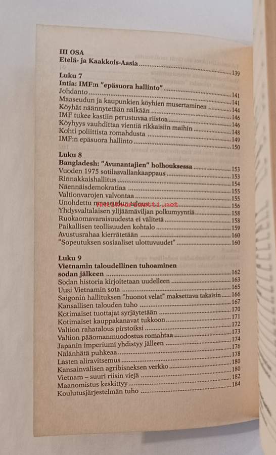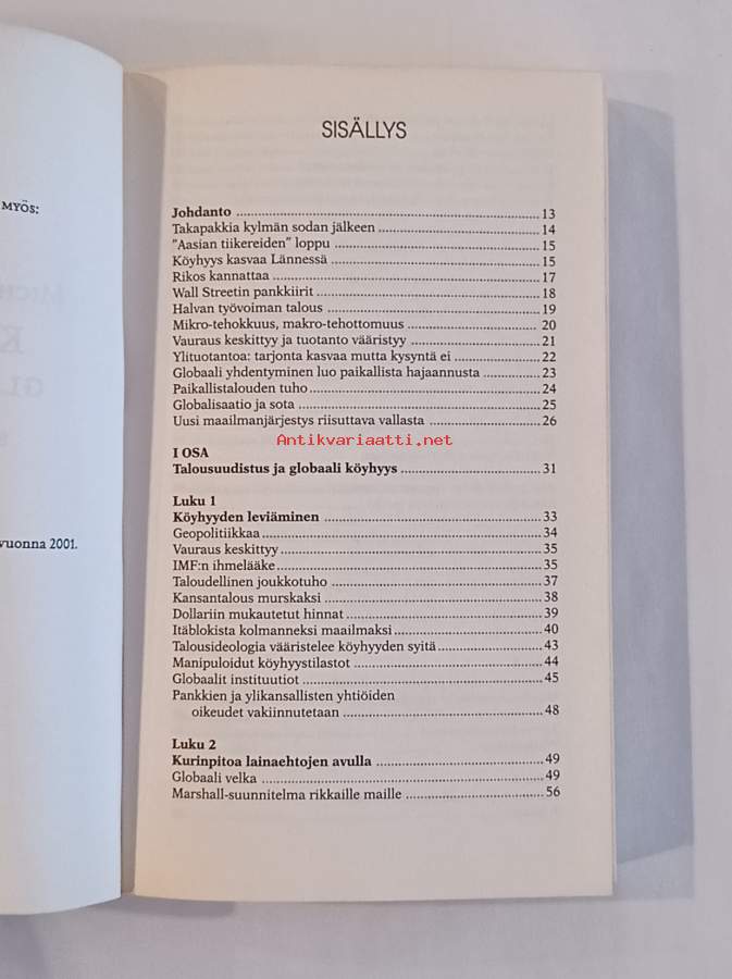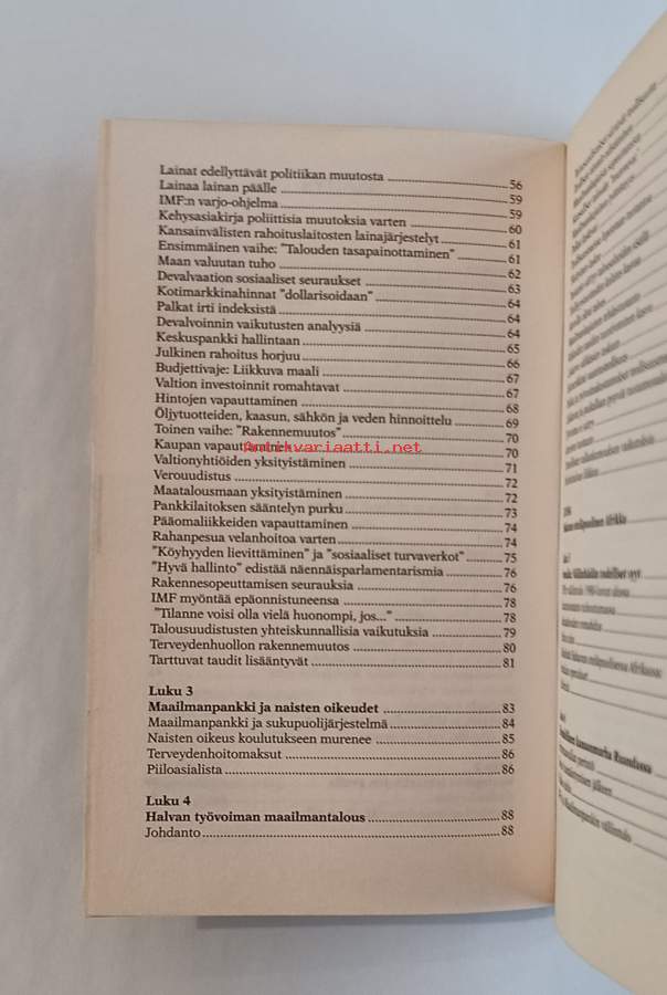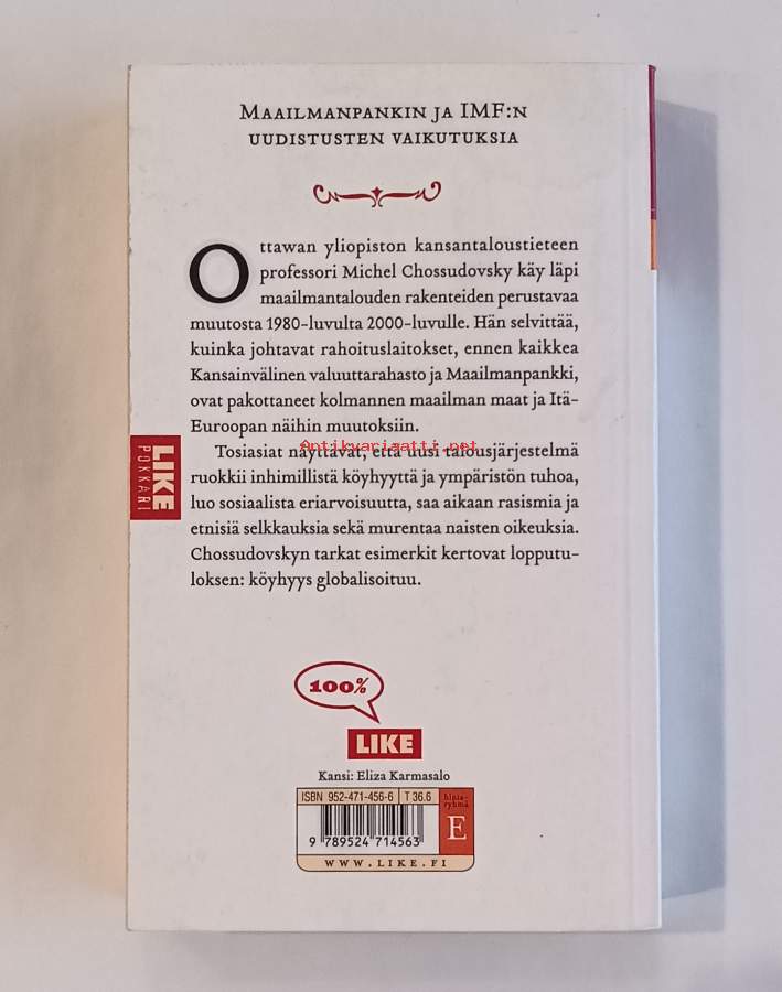 Kansantaloustieteen professori ja salaliittoteoriikkona tunnettu Michel Chossudovsky korreloi Itä-Euroopan ja kolmansien maiden köyhyyttä ja ympäristökatastrofeja lännen rahoituslaitoksien päätöksiin, ja suuressa roolissa ovat Maailmanpankki ja IMF (Kansainvälinen valuuttavirasto). Chossudovsky tuo esille miten laitosten sekaantuminen maiden talousstruktuuriin, esimerkiksi makrotalousuudistuksilla, aiheuttaa sosiaalista eriarvoisuutta, pahentaa naisten oikeuksia ja luo rasismia.