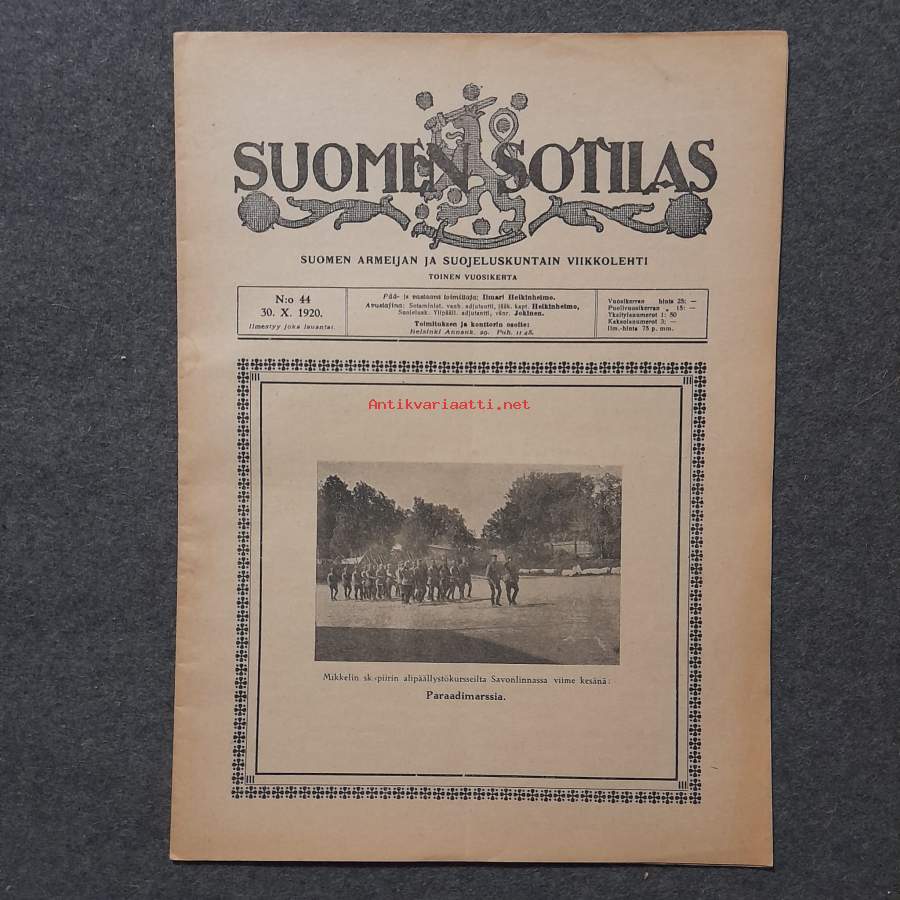 Suomen sotilas - Suomen armeijan ja suojeluskuntain viikkolehti. 2. vuosikerta. No.44 1920