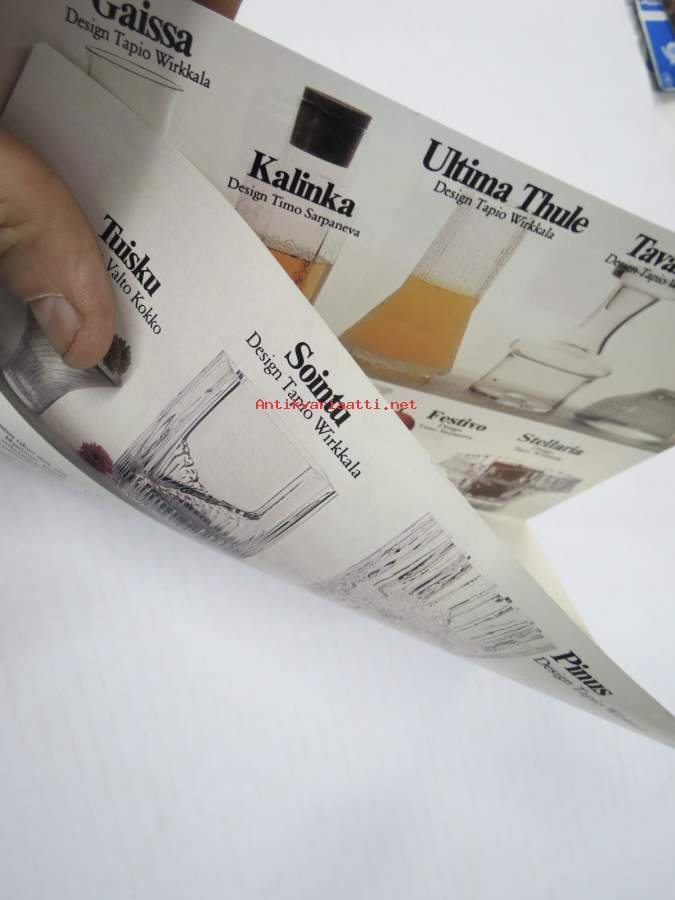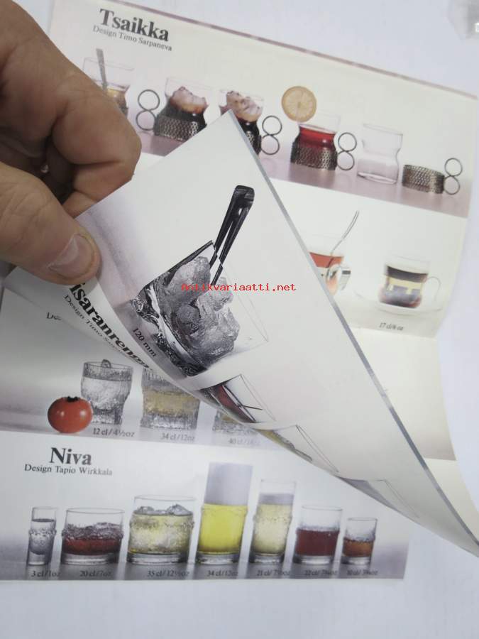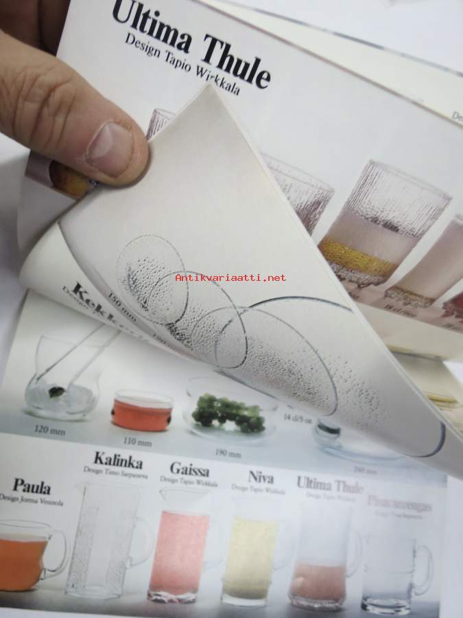Ahlström Iittala -tuoteluettelo / myyntiesite; Tsaikka, Paula, Otso, Gaissa, Pisaranrengas, Aslak, Niva, Kalinka, Ultima Thule, Valssi, Marski, Tapio, Senaattori ym.