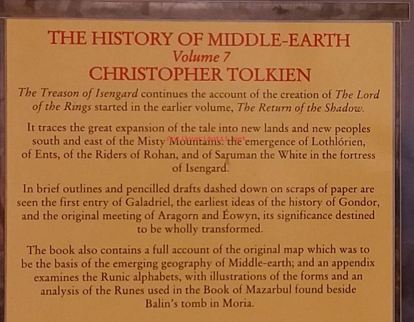 Kirja jatkaa The Lord of the Ringsin kehityshistoriaa : Morian jälkeiset tapahtumat, Rohanin ratsastajat ja Entit, Sarumanin petos, Gondorin historia, Éowynin ja Aragornin kohtaaminen. Se jatkaa Taru Sormusten Herrasta -romaanin varhaisten luonnosten tutkimista. Dimensiot 20 ¤ 13 cm.