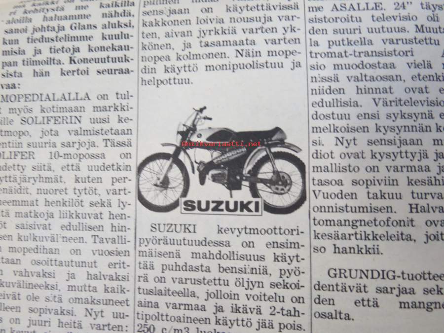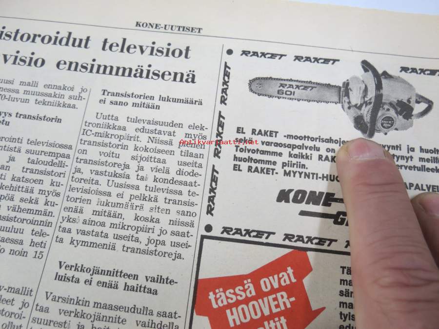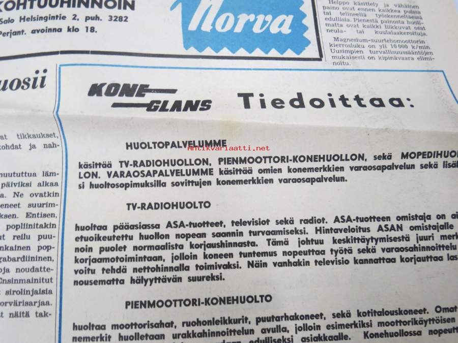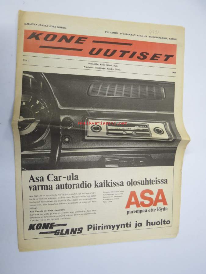 Kone-Uutiset 1969 nr 1 -Kone Glans Oy mainoslehti; ASA Car-ula & Matka-automatic radiot, Terhi perämoottorit, Vespa SS - Primavera - Commercial, Solifer 10 mopedi ym