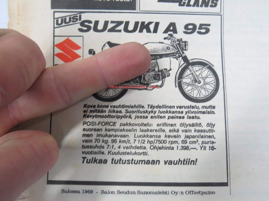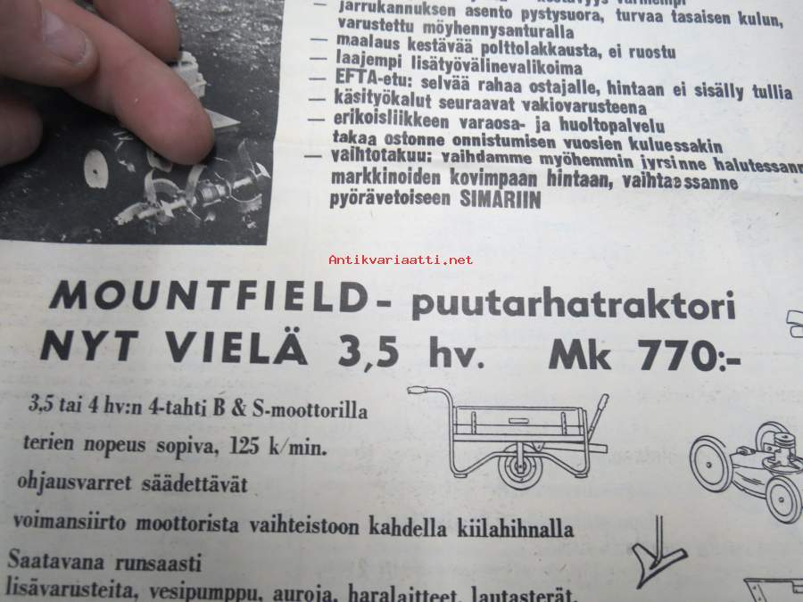 Tabloid-kokoinen mainos- ja esittelylehti, myös Simar & Mountfield puutarhatraktorit, Suzuki A 95.