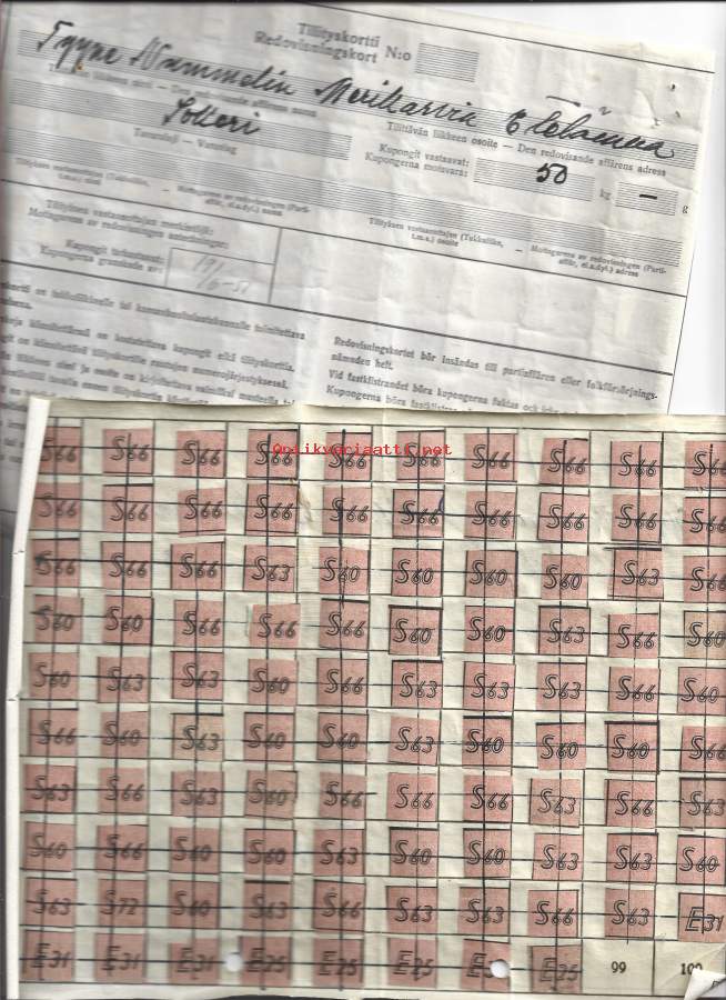 Tilityskortti - Sokeri KHL / Kauppias Tyyne Nummelin Merikarvia