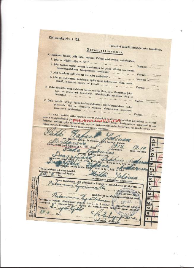 Ostokorttianomus 1941 Karijoen Kansanhuoltolautakunta