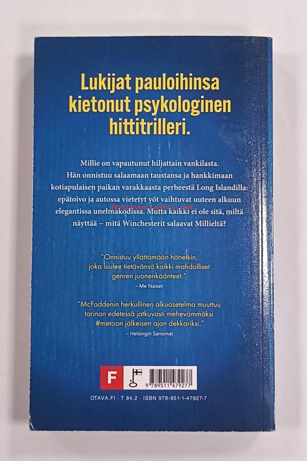 Ensimmäinen osa Kotiapulainen -kirjasarjaa, josta on tekeillä myös elokuva. Vankilasta hiljattain vapautunut Millie kokee onnensa kääntyneen, kun hän löytää kotiapulaisen pestin rikkaiden Winchestereiden kodista Long Islandista. Unelmien työpaikan kuva tosin muuttuu, kun Millie löytää huoneensa oven ulkopuolelta lukot.