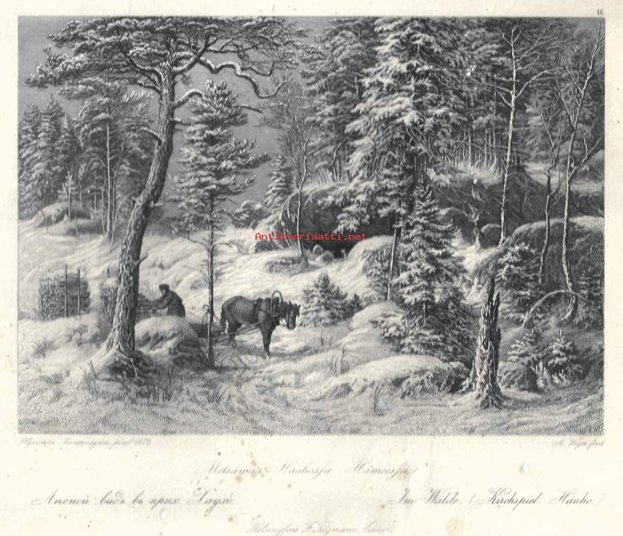 Metsämaa Hauhossa Hämeessä : pinx. Hjalmar Munsterhjelm http://www.doria.fi/handle/10024/33443 http://www.urn.fi/URN:NBN:fi-fe2022052338134BildMunsterhjelm, Hjalmar1885Helsingfors : K. E. Holm 1885, A. WegerKuvan nimi myös saksaksi ja venäjäksi. - Litografia tehty Hjalmar Munsterhjelmin maalauksen pohjalta.Fysisk beskrivning 1 grafiikan lehti (mv); 11,5 x 16,5 cmSpråk finskatyskaryskaÄmnen maisema - Hauho - 1800-luku metsätyö metsät metsämaa Weger, August