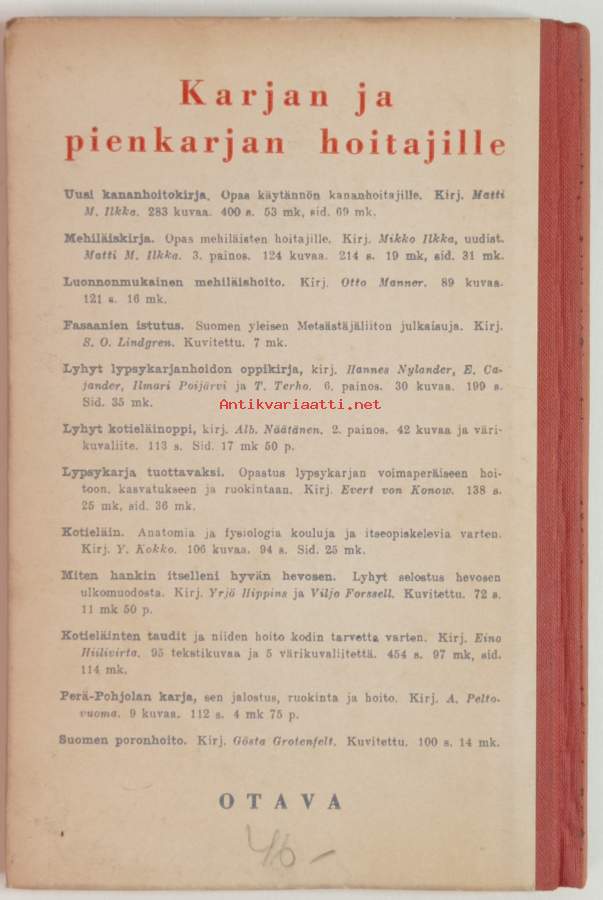 Kirjassa käsitellään kaniinihoitoa liha ja turkistuotantoon.Dimensiot: 20x13cm