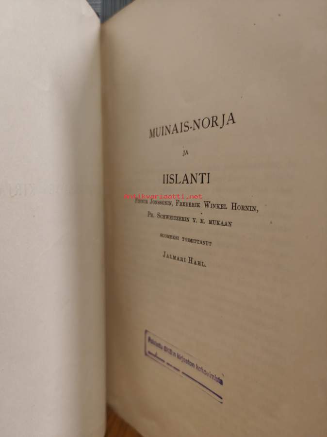 Muinais-Norja ja Iislanti : Finnur Jonssonin, Frederik Winkel Hornin, PH. Schweitzerin y.m. mukaan