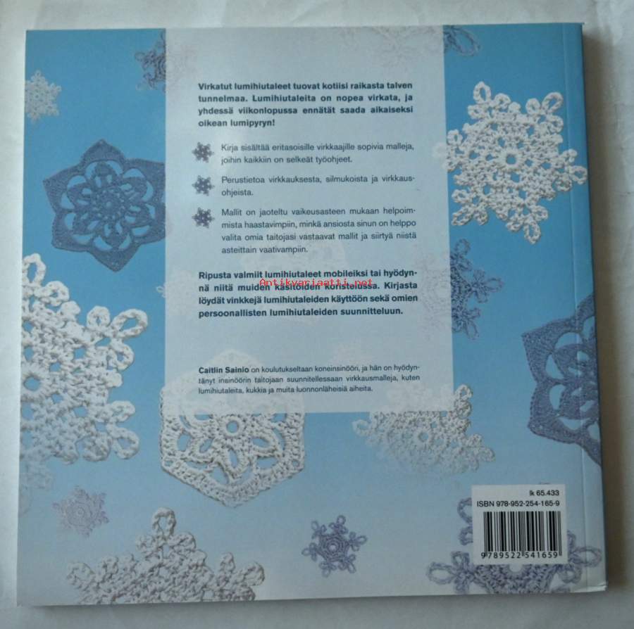 Virkatut lumihiutaleet tuovat kotiin raikasta talven tunnelmaa. Lumihiutaleita on nopea virkata, ja yhdessä viikonlopussa ehtii saada aikaan oikean lumipyryn! Kirja sisältää eritasoisille virkkaajille sopivia malleja, joihin kaikkiin on selkeät työohjeet. Lisäksi annetaan perustietoa virkkauksesta, silmukoista ja virkkausohjeista. Mallit on jaoteltu vaikeusasteen mukaan helpoimmista haastavimpiin, minkä ansiosta lukijan on helppo valita omia taitojaan vastaavat mallit ja siirtyä niistä asteittain vaativampiin. Valmiit lumihiutaleet voi ripustaa mobileksi ja niitä voi hyödyntää muiden käsitöiden koristelussa. Kirjasta antaa vinkkejä lumihiutaleiden käyttöön sekä omien persoonallisten lumihiutaleiden suunnitteluun. Caitlin Sainio on koulutukseltaan koneinsinööri. Hän on virkannut lähes koko ikänsä ja hyödyntänyt insinöörin taitojaan suunnitellessaan virkkausmalleja, kuten lumihiutaleita, kukkia ja muita luonnonläheisiä aiheita.