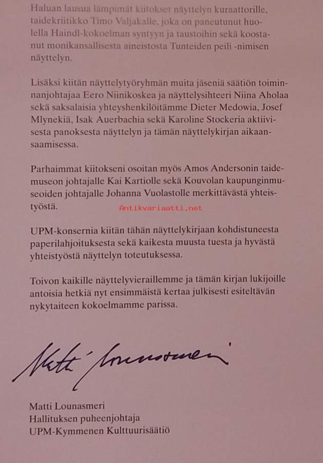 Tunteiden peili : kansainvälistä nykytaidetta UPM-Kymmenen kulttuurisäätiön kokoelmista. ( taidekirjat, taidenäyttelyt )