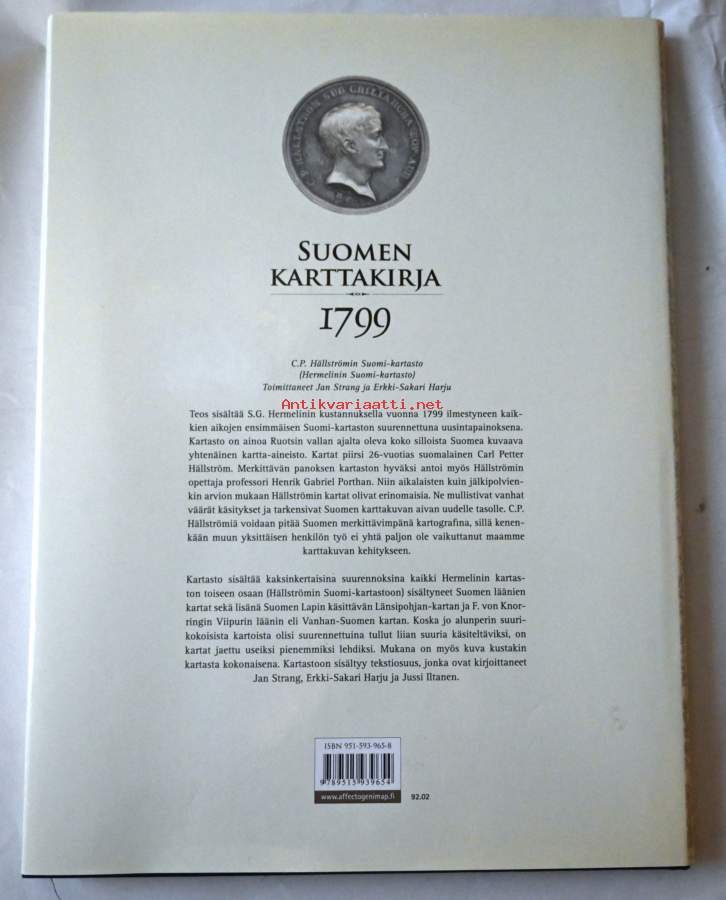 Suurennettu uusintapainos C.G. Hermelinin kustannuksella vuonna 1799 ilmestyneestä kaikkien aikojen ensimmäisestä Suomi-kartastosta. Kartasto on ainoa Ruotsin vallan ajalta oleva Suomea kuvaava yhtenäinen kartta-aineisto. Kartat piirsi 25-vuotias suomalaisnuorukainen Carl Petter Hällström. Niin aikalaisten kuin jälkipolvienkin arvion mukaan Hällströmin kartat olivat hyviä. Ne mullistivat vanhat väärät käsitykset ja tarkensivat Suomen karttakuvan aivan uudelle tasolle. Kartat ovat huolellisesti ja kauniisti piirretyt, tarkat ja aikansa luotettavimmat. Nyt julkaistava uusintapainos sisältää kaksinkertaisina suurennoksina kaikki Hällströmin atlakseen sisältyneet Suomen läänien kartat sekä lisänä Suomen Lapin käsittävän Länsipohjan kartan. Alkuperäisteoksen suuret lehdet on jaettu useiksi pienemmiksi lehdiksi. Mukana on myös kuva kustakin kartasta kokonaisena. Kartastoon sisältyy tekstiosuus, jonka on kirjoittanut karttahistorioitsija Jan Strang. Kartaston on toimittanut Erkki-Sakari Harju. Todella hieno lahjatuote, joka sopii erinomaisesti myös sukututkimusta tekeville!