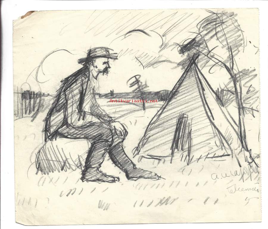 Aarne Ulappa, "Retkeilijä" lyijykynäpiirros kehystämätön 17x20 cm
