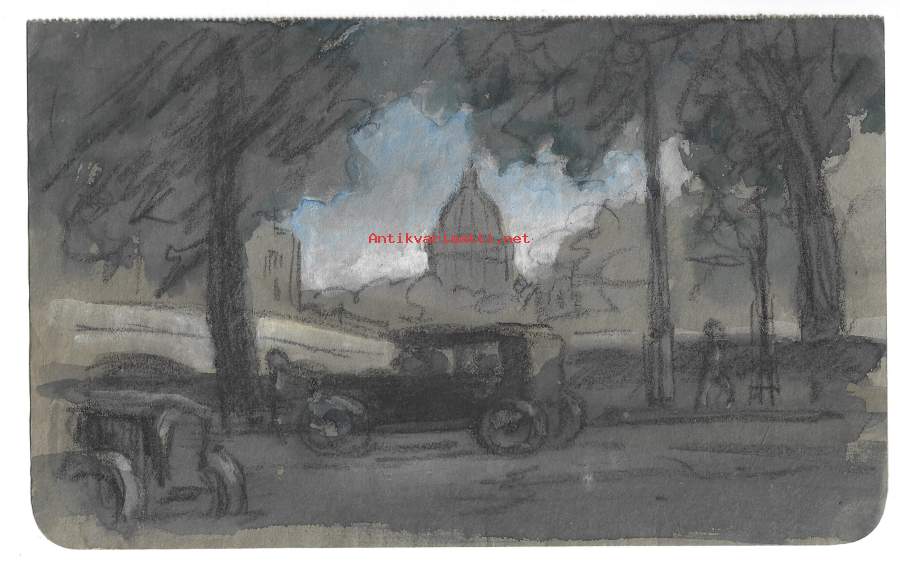 1920-luvun autoilu nostalgiaa akvarelli kehystämätön 15x24 cm