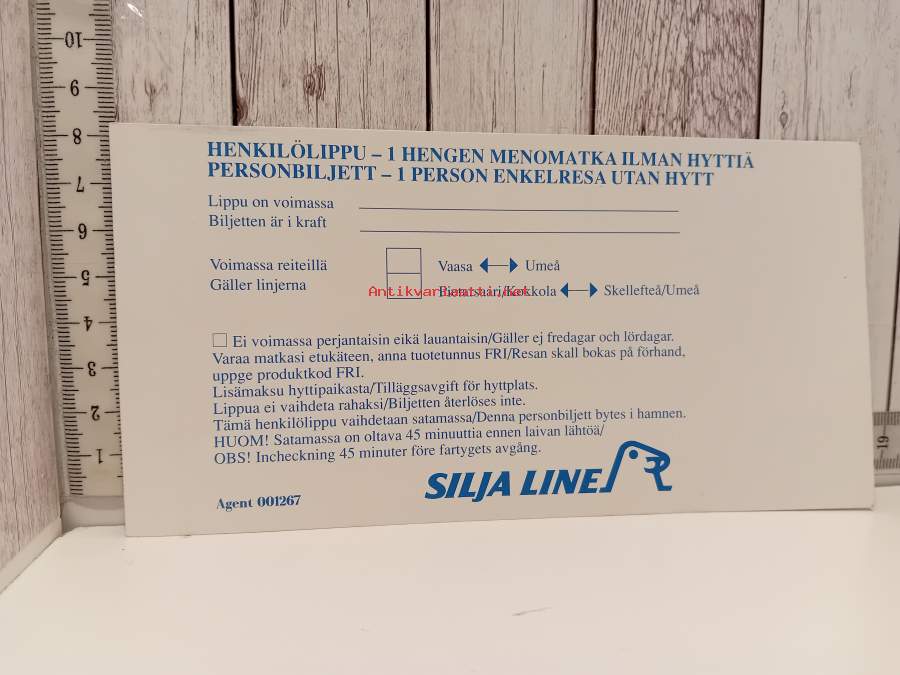 Silja Line tarra ( 25 x 6,3) ja 1 hengen matkalippu