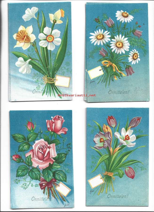 Kukkia sign Orvo Sundelin - taiteilijapostikortti postikortti kulkematon 8 eril