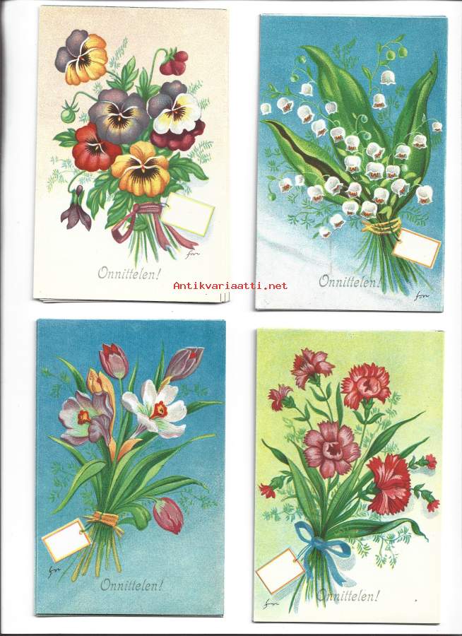 Kukkia sign Orvo Sundelin - taiteilijapostikortti postikortti kulkematon 8 eril