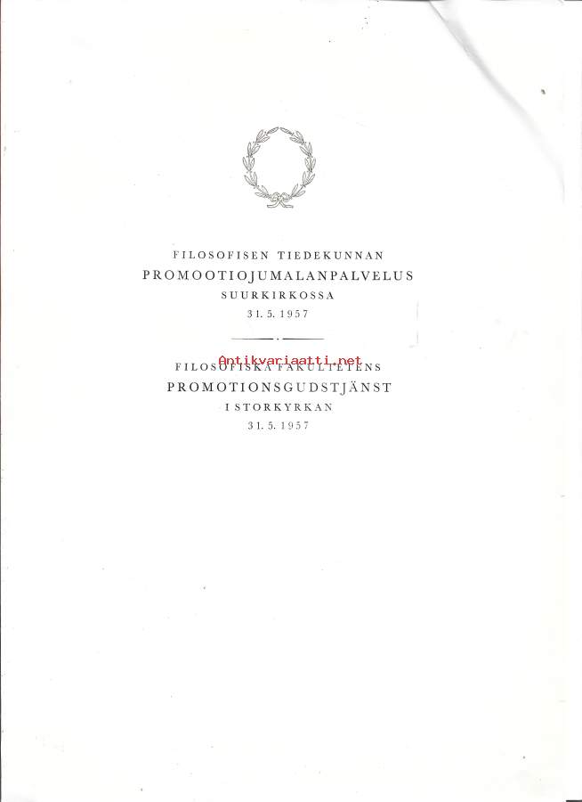 Filosofian Tiedekunnan Promootiojumalanpalvelus Suurkirkossa 1957