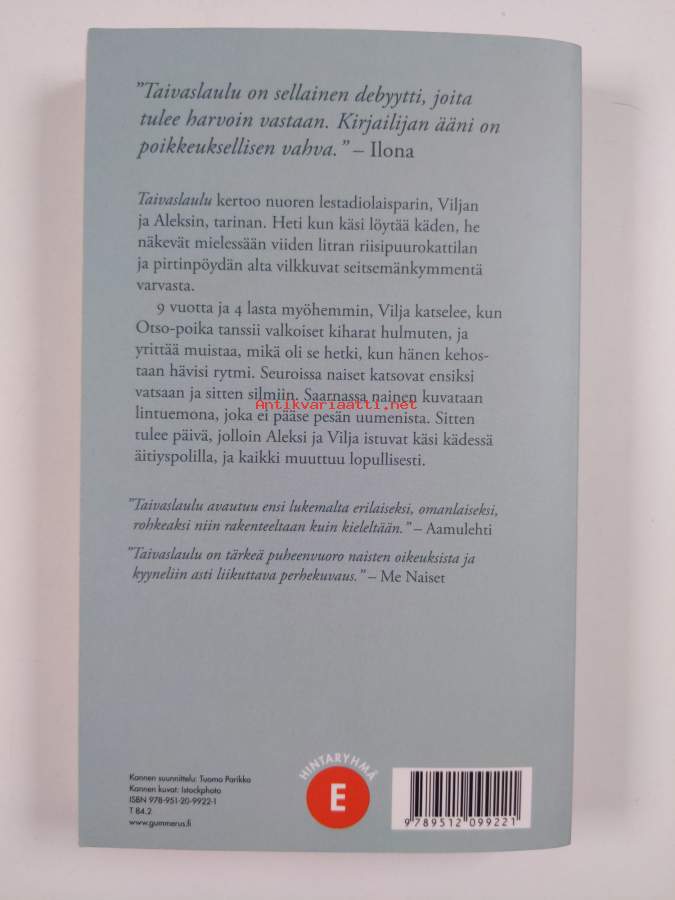 Hyvä. Hieman kulumaa kulmissa, selkämyksessä hieman vinoutta, selkämyksessä lukutaittumaa