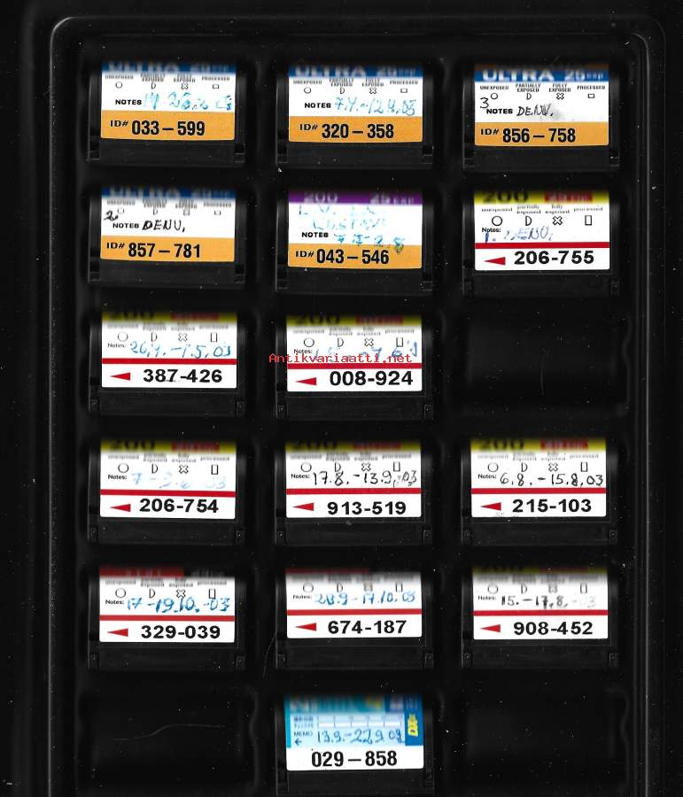 Agfa Kodak Konica negatiivikansio 15 rullaa negatiiveja ja kuva index 2000