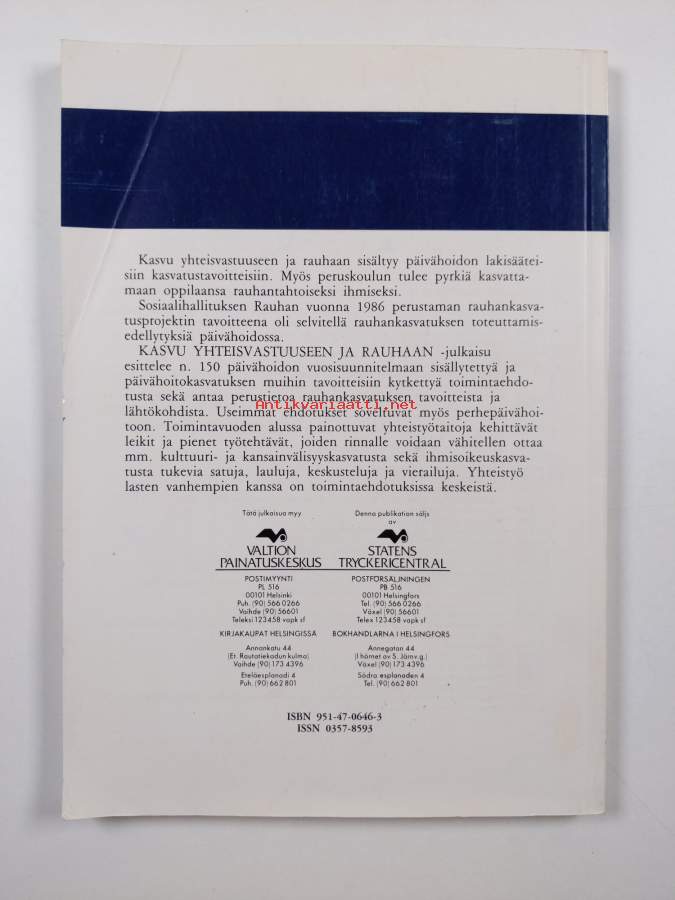 Muu(t) tekijä(t): Riitta WahlströmSarja: Sosiaalihallituksen julkaisuja 10/1987Asiasanat: kasvatus, rauhanaate