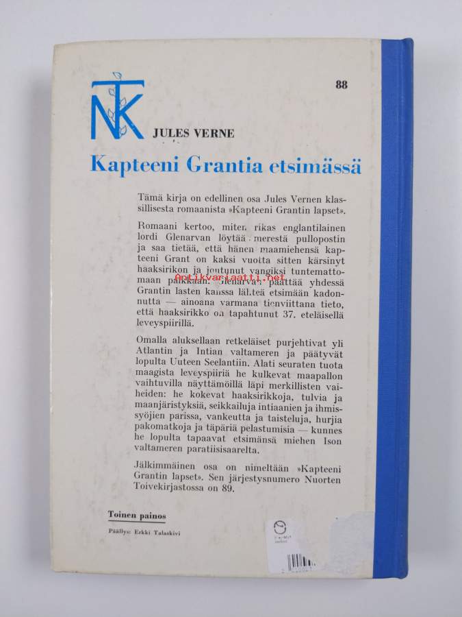 Muu(t) tekijä(t): Martta TynniSarja: Nuorten toivekirjasto 88Alkuteos: Les enfants du capitaine GrantAsiasanat: nuortenkirjallisuus, seikkailukirjallisuus