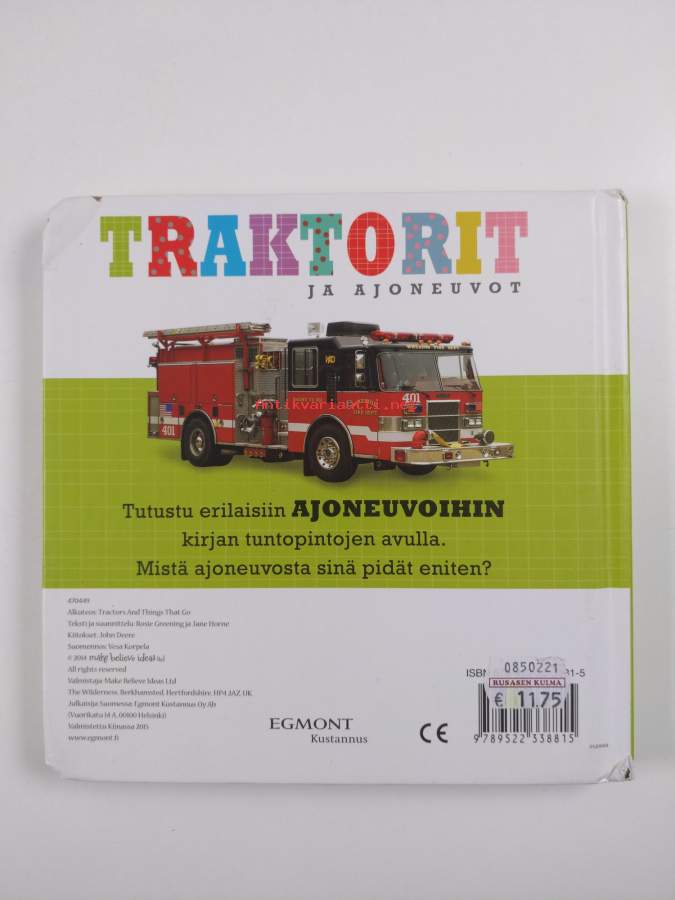 Muu(t) tekijä(t): Jane Horne, Vesa KorpelaAlkuteos: Tractors and things that goAsiasanat: traktorit, ajoneuvot, kuvakirjat, paksulehtiset kirjat, koskettelukirjat
