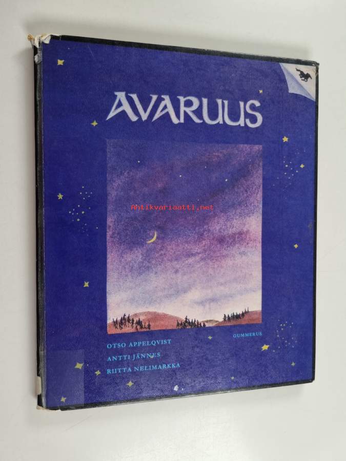 Tyydyttävä. Tarkempi kuntoluokka: K2- ; Pientä kulumaa, pientä repeämää selkämyksen päissä, selkämyksessä hieman vinoutta, kontaktimuovipäällystys, kirjaston poistokirja