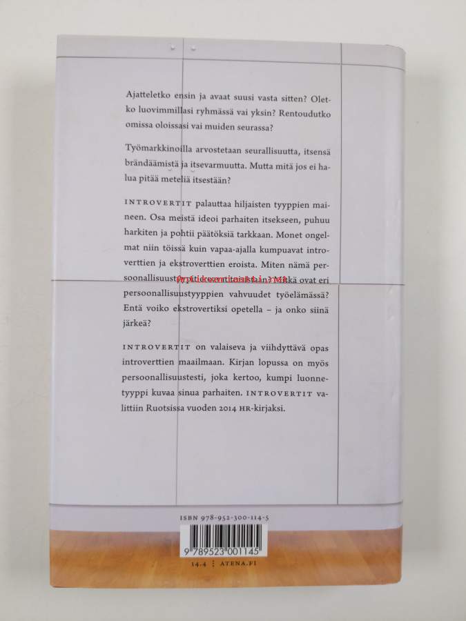 Muu(t) tekijä(t): Ulla LempinenAlkuteos: IntrovertAsiasanat: ihmissuhteet, työelämä, sosiaalinen vuorovaikutus, persoonallisuuden piirteet, temperamentti, sosiaalisuus, introversio