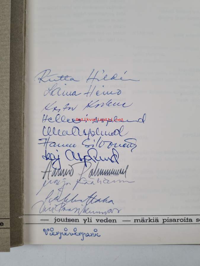 Hyvä. Tarkempi kuntoluokka: K3- ; Hieman kulumaa kansissa, selkämyksessä hieman vinoutta, havaittavissa hieman tupakanhajua (mikä huomioitu kuntoluokituksessa). tekijöiden signeeraama