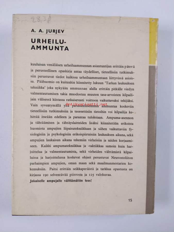 Muu(t) tekijä(t): R. HurmeMerkinnät: omistajamerkintäAlkuteos: Sportivnaja streljbaAsiasanat: tekniikka, aseet, ammunta, ampuma-aseet, ampumatarvikkeet