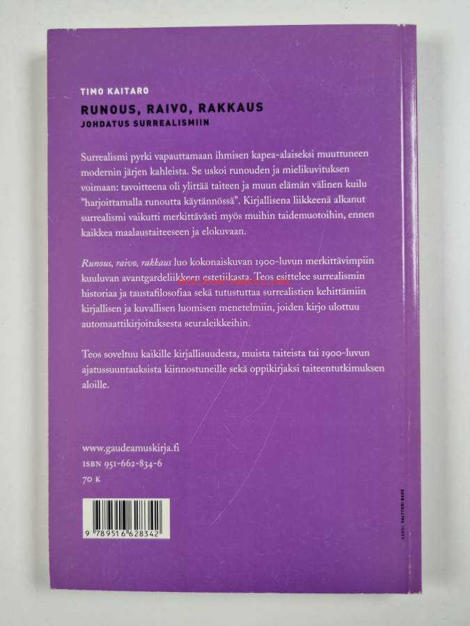 Merkinnät: omistajamerkintäAsiasanat: historia, kirjallisuudentutkimus, kirjallisuudenhistoria, unet, maalaustaide, tulkinta, taide, kuvataide, symboliikka, kirjallisuus, fantasia, rakkaus, taidehistoria, mielikuvitus, avantgarde, piilotajunta, taidefilosofia, symbolit, surrealismi, käsitykset, automaattikirjoitus, estetiikka, todellisuus, sattuma, taiteentutkimus, assosiaatio, suuntaukset, elokuvataide, litteraturhistoria, bildkonst, kärlek, konst, konsthistoria, målarkonst, litteraturvetenskap, uppfattningar, estetik, fantasi, inbillningsförmåga, litteratur, konstfilosofi, filmkonst, konstforskning, dadaismi, verklighet, metaforat, drömmar, tolkning (kognition), symbolik, symboler, Surrealism, undermedvetande, irrationalismi, association, metaforer, slump, automatisk skrift, inriktningar, dadaism, irrationalism