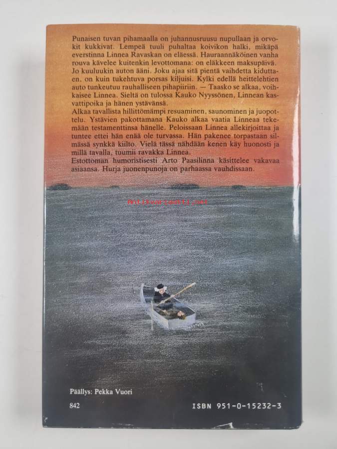 Hyvä. Pienoista nuhruisuutta yläreunassa, selkämyksessä vinoutta. Kansipaperin kunto: joitain repeämiä/kulumaa