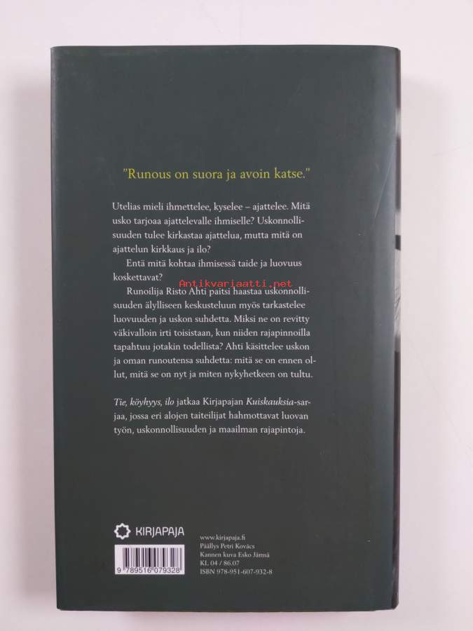 Merkinnät: omistajamerkintäSarja: Kuiskauksia3Asiasanat: usko, taide, luovuus, kaunokirjallisuus, runoilijat, lyriikka