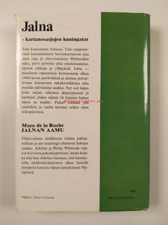 Mazo De la Roche -paketti (12 kirjaa) : Jalnan veljekset ; Jalnan miehet palaavat ; Jalnan isäntä ; Jalnan perhe ; Jalnan kotiopettajar ; Jalnan nuori Renny ; Jal...