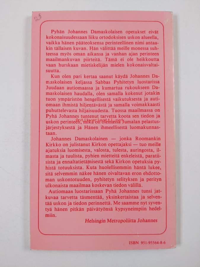Muu(t) tekijä(t): Johannes SeppäläAlkuteos: Ekdosis akribēs tēs orthodoxou pisteōs