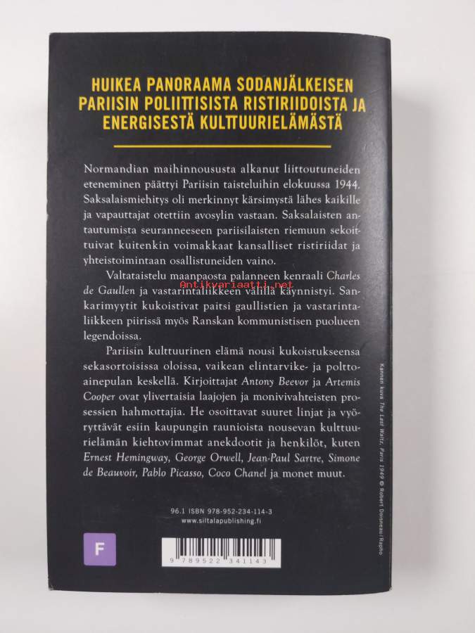 Alkuteos: Paris after the liberation 1944-1949Asiasanat: sisäpolitiikka, poliittinen historia, kommunistiset puolueet, Ranska, vastarintaliikkeet