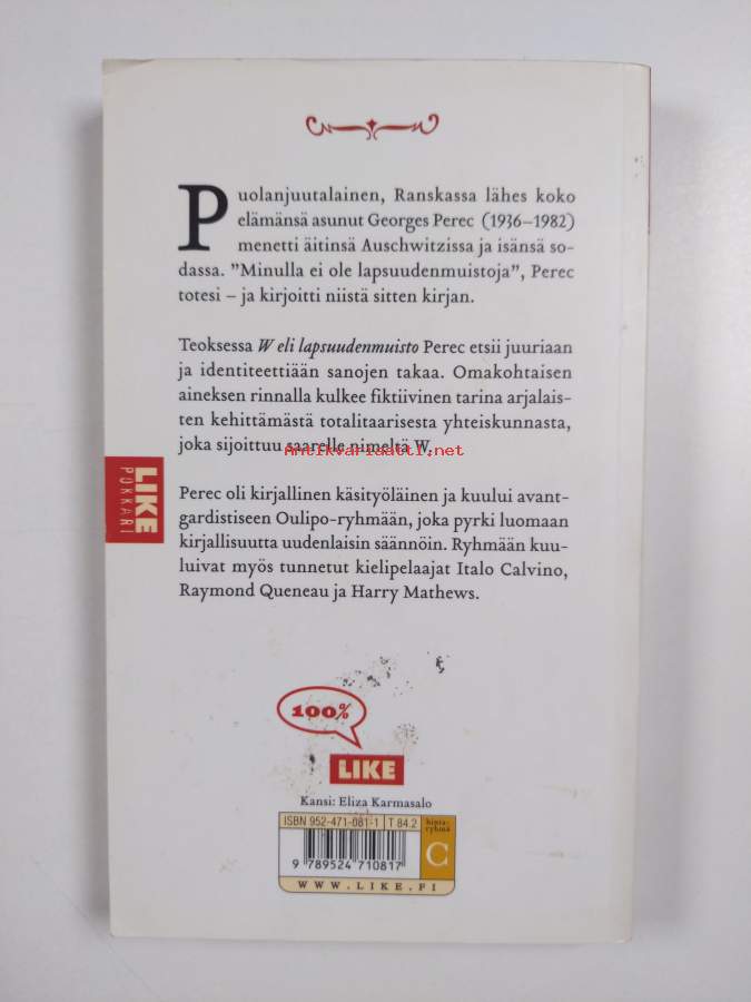 Muu(t) tekijä(t): Päivi KosonenSarja: Like-pokkari 82Alkuteos: W, ou, le souvenir d'enfance