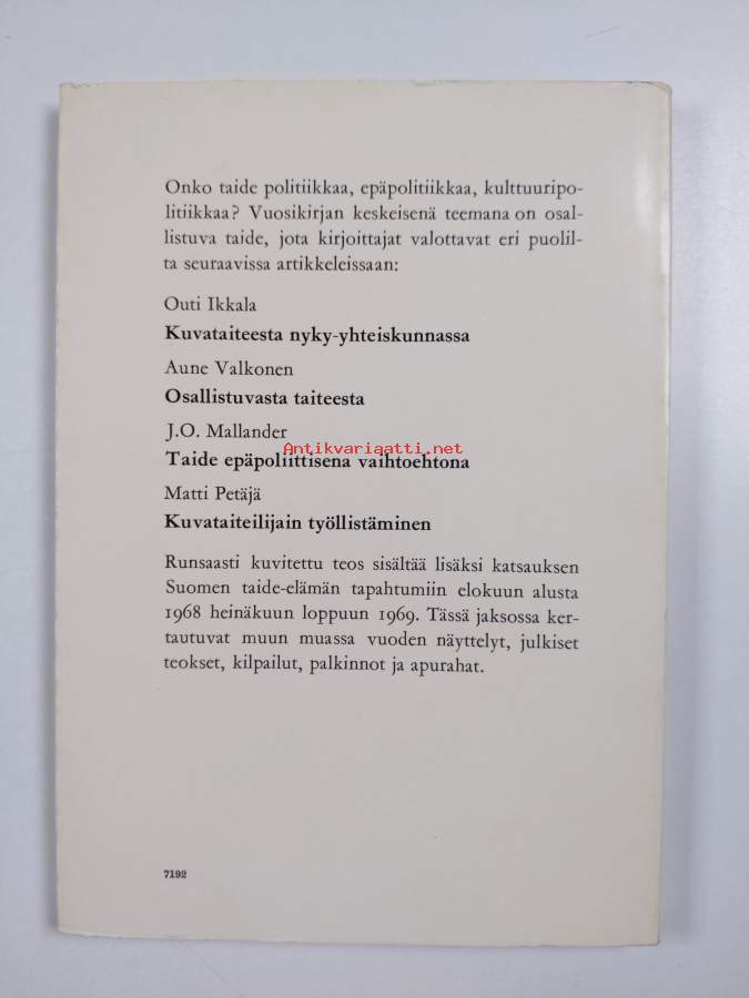 Muu(t) tekijä(t): Heikki AlitaloAsiasanat: kuvataiteilijat, kuvataide, Suomi, osallistuva taide, Valtion taidekilpailu 1968, Ars 69 Helsinki