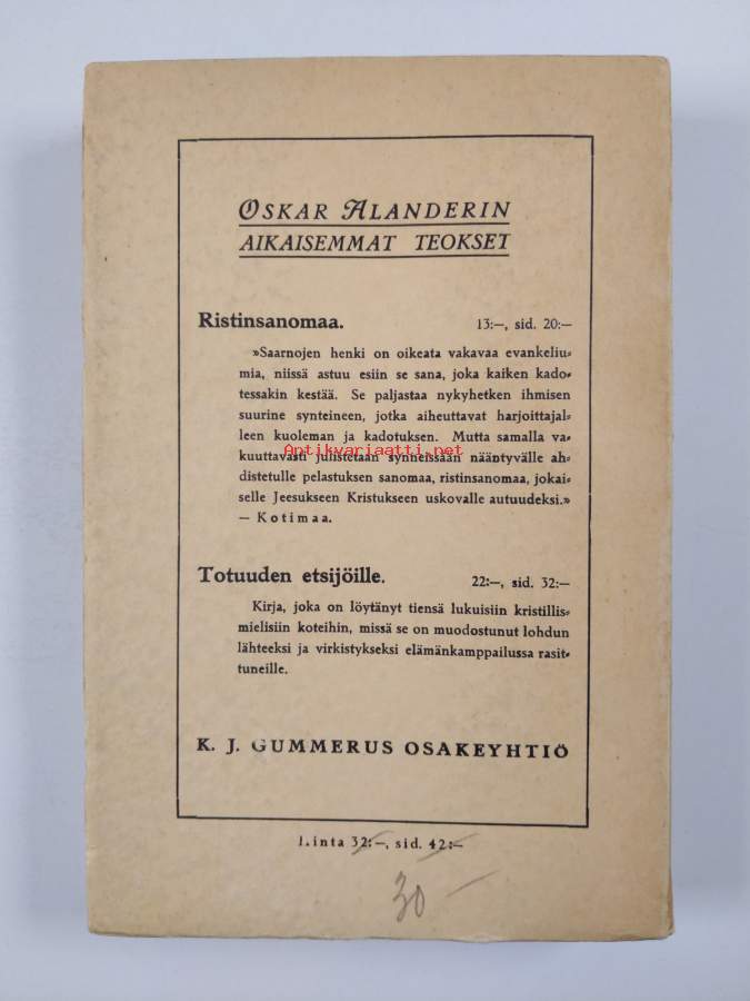Hyvä. Tarkempi kuntoluokka: K3+ ; Hieman kulumaa kansissa, sivut vielä leikkaamatta auki eli lukematon kirja, selkämyksessä lukutaittumaa